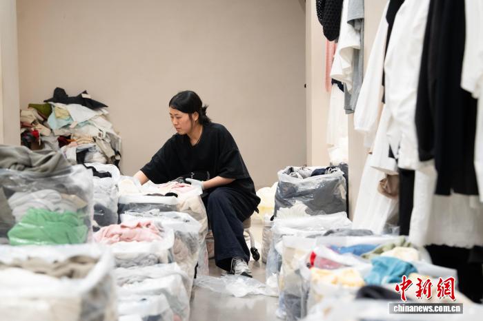 4月9日,伴计整饬自家商户新到衣饰。克日,跟着气候降暖,位于浙江杭州的“华夏装束第1街”四序青装束特征街区已齐里上新夏拆。中新社记者 吴君毅 摄