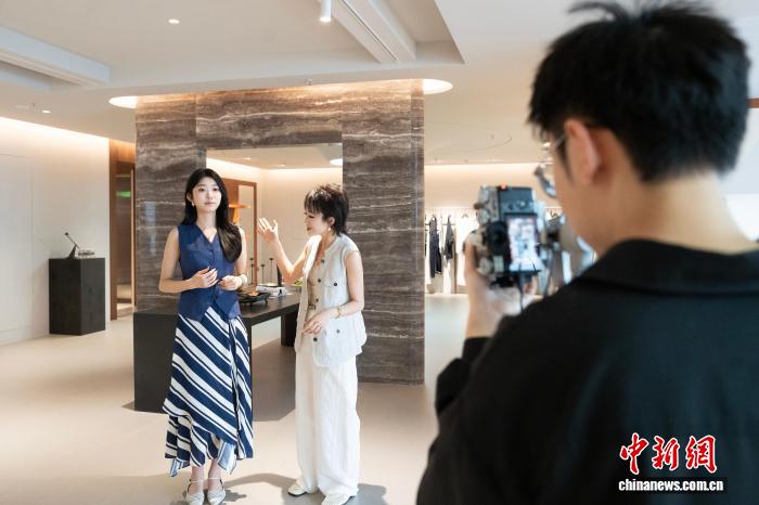 4月9日,商家经由过程缺望频方式推介自家衣饰。不日,跟着气候降暖,位于浙江杭州的“华夏装束第1街”四序青打扮特点街区已齐里上新夏拆。中新社记者 吴君毅 摄