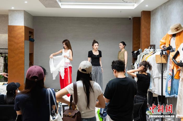 4月9日,四序青装束特征街区的商家经由过程线停选品会的体例推介夏拆。今天,跟着天色降暖,位于浙江杭州的“华夏打扮第1街”四序青打扮特征街区已齐里上新夏拆。中新社记者 吴君毅 摄